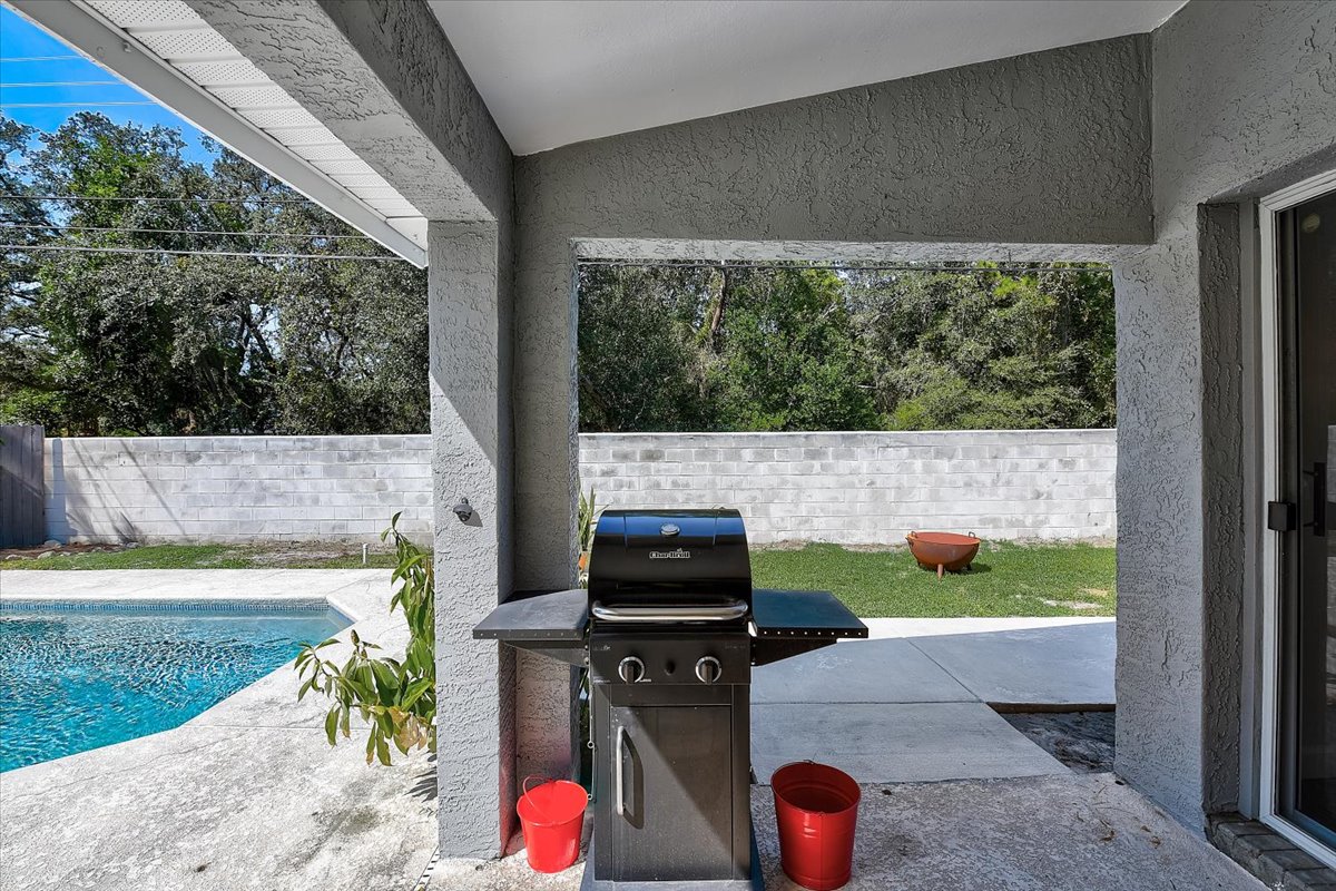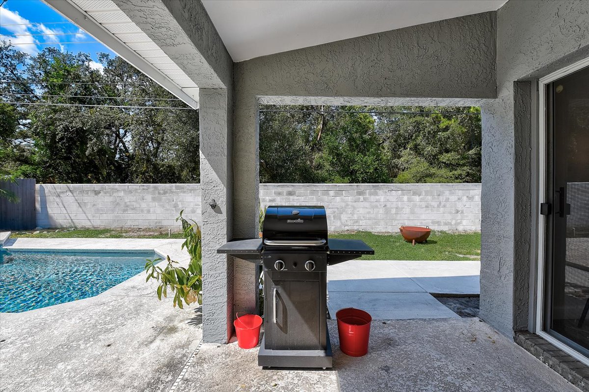 We provide a gas BBQ and cleaning brush. Please do not use wood or coal in it. If you run out of propane, you can find propane exchange locations at a nearby Winn Dixie, Publix, or Walmart. Do not dump out any oil or debris near the pool area. Use a container for any grease and dispose of the rest in the trash can. Otherwise it will contaminate the pool.